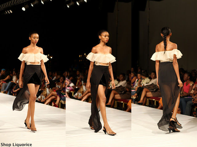Shop Liquorice is live and direct at the ongoing Lagos Fashion and Design Week, bringing you crisp photos from every angle our brilliant photographer can manage. Today, we begin with the sensational and breathtaking Maki Oh -- one of the continent's wunderkids of sorts, who has an intutitive knack for merging contemporary and traditional, especially in this collection. Expect a full-blown Shop Liquorice review, but, in the meantime, enjoy the gorgeous details - from the raffia in-built in a pair of organza shorts, to a sensational velvet green dress.